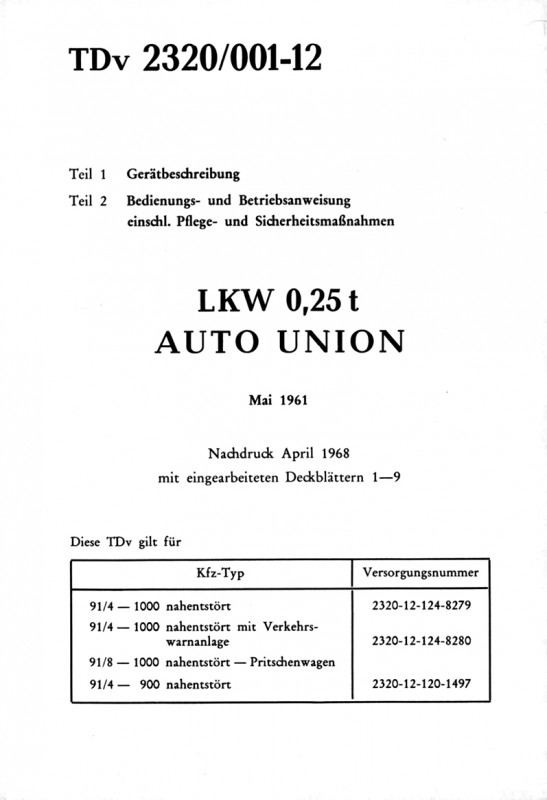 DKW Auto Union Munga Bedienungsanleitung Beschreibung TDv Handbuch 1961