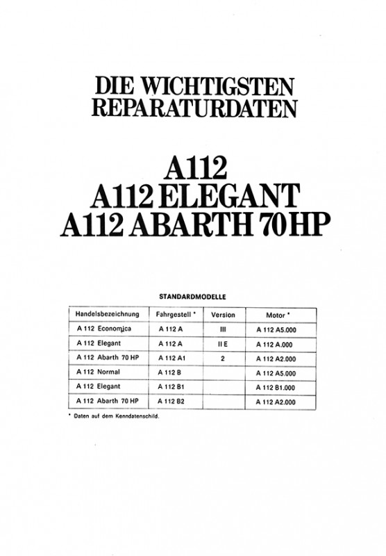 Autobianchi Lancia A112 Economica Elegant Abarth 70 HP Normal Berlina Reparaturanleitung