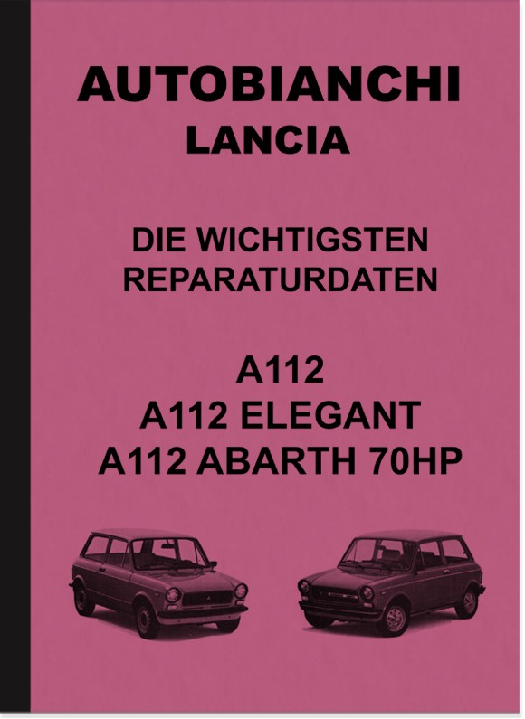 Reparaturhilfe und Beschreibung für den Autobianchi/Lancia A 112 (Economica/Elegant/Abarth 70 HP/Normal/Berlina), mit allen technischen Daten und Schaltplänen. Auch für Modelle aus Israel und Schweden. Ausgabe in deutsch.