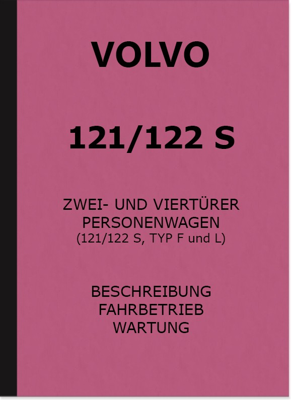 Bedienungsanleitung für Volvo 121 / 122 S (Typ F und L) Zwei- und Viertürige Personenwagen. Beschreibung, Fahrbetrieb und Wartung mit Schaltplan und Schmierplan.