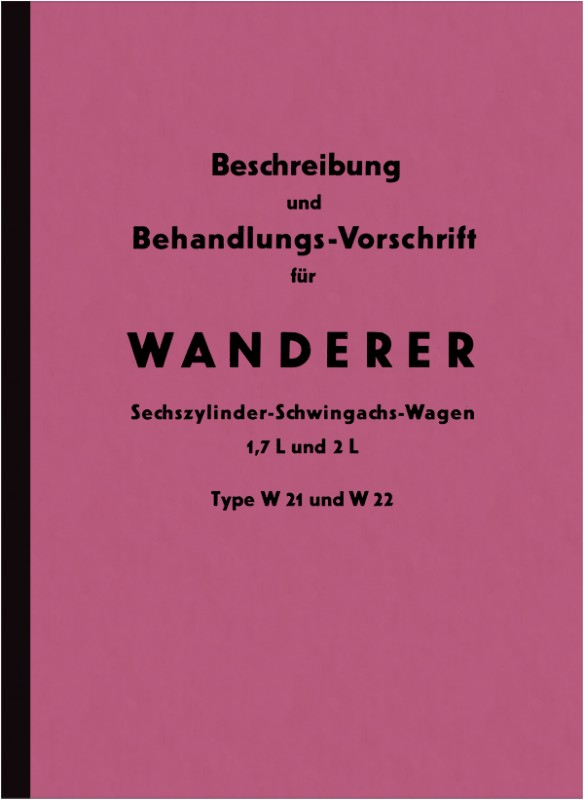 Bedienungsanleitung für Wanderer W 21 und W 22 Sechszylinder Schwingachs-Wagen 1,7 und 2,0 Liter. Inklusive Schmierplan. Ausgabe etwa 1934, in deutsch.