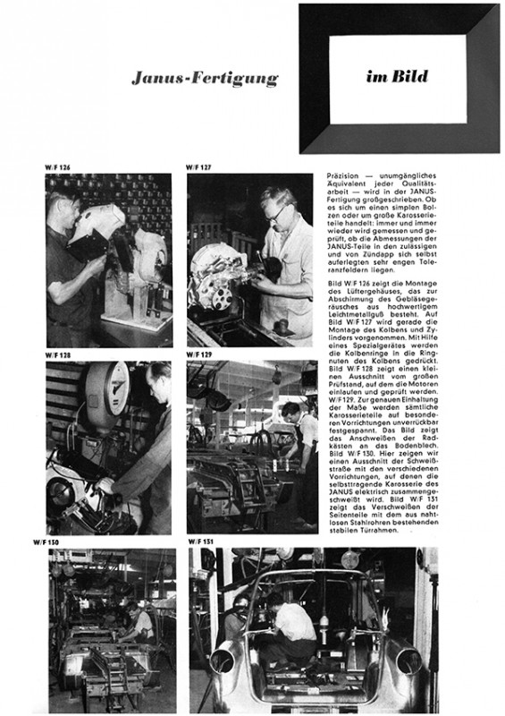 Historische Presseinformationen zum Zündapp Janus 250. Technische Daten, Fotos vom Fahrzeug und der Herstellung, Zeichnungen, etc.