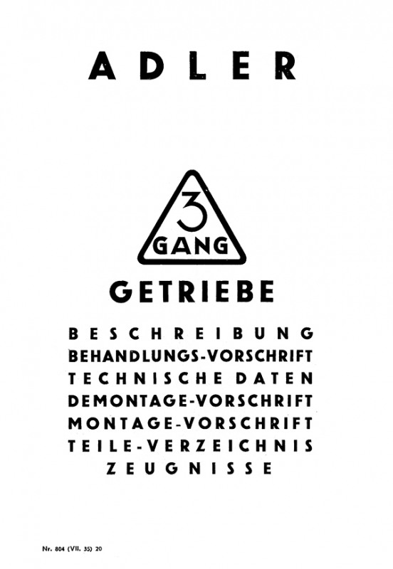 Handbuch/Reparaturanleitung für Adler 3-Gang Fahrrad. Ausgabe 1935, in deutsch.