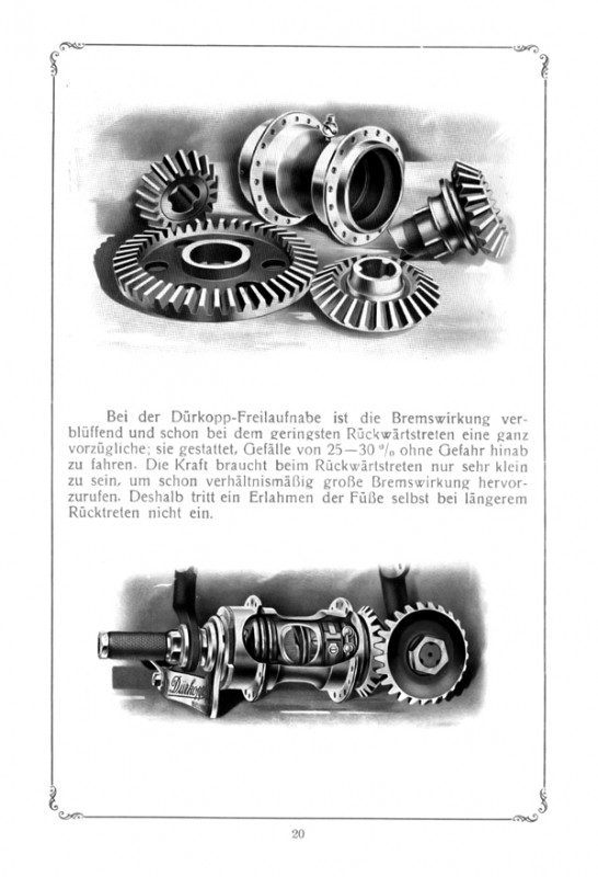 Prospekt/Beschreibung/Katalog über Dürkopp Fahrräder mit Kardanantrieb. Ausgabe etwa 1925, in deutsch.