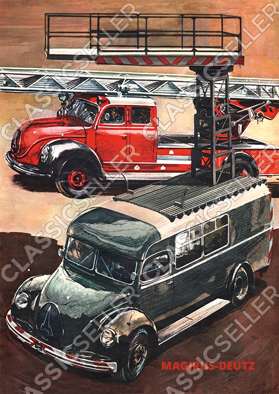 Magirus-Deutz LKW Lastwagen Nutzfahrzeug Leiterwagen Poster Plakat Bild