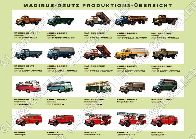 Magirus-Deutz Übersicht Lastkraftwagen LKW Nutzfahrzeuge Bus Poster Plakat Bild