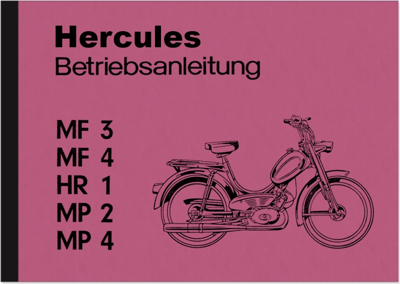 Bedienungsanleitung für Hercules MF 3 mit Sachs-Motor 50/2MLC/ MF 4 mit Sachs- Motor 50/AMLC/ HR 1 (Hobby Rider) mit Sachs-Motor 50/2C/ MP 2 und MP 4 (Duo) mit Sachs-Motor 50/2MB, mit 2-Gang Motor. Ausgabe etwa 1972.