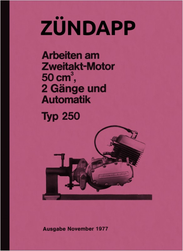 Reparaturanleitung "Arbeiten an 2-Takt-Motoren" für Zündapp 50 ccm, Motortyp 250, 2-Gang und Automatik für die Modelle: