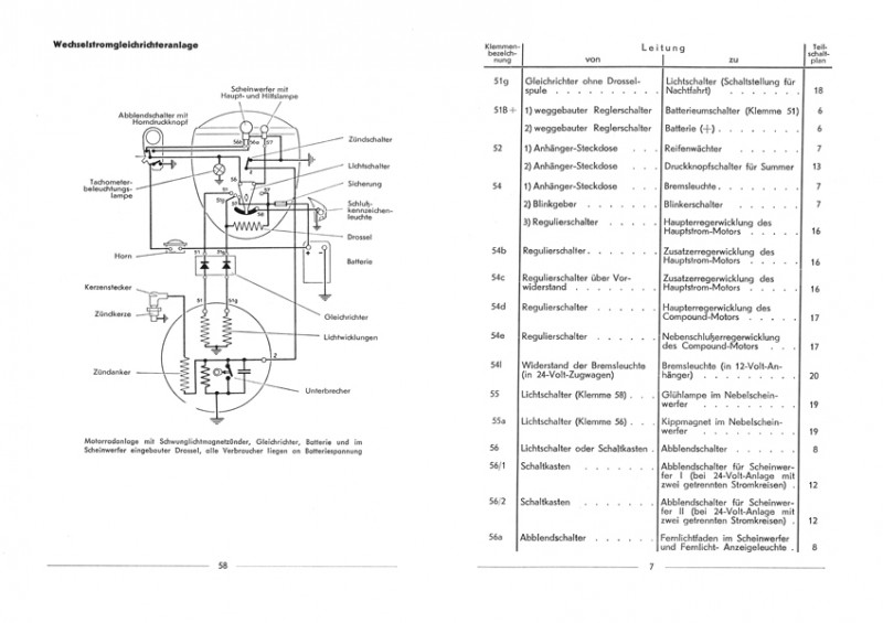 Schaltbilder und Schaltpläne von elek. Kraftfahrzeuganlagen der Firma Bosch: z.B: Borgward Isabella, DKW-Sonderklasse, Ford Taunus, Goliath GP, Lloyd 400/600 sowie Schlepper- und Motorradschaltpläne und Klemmenbezeichnungspläne für Modelle ca. 1950-1960.