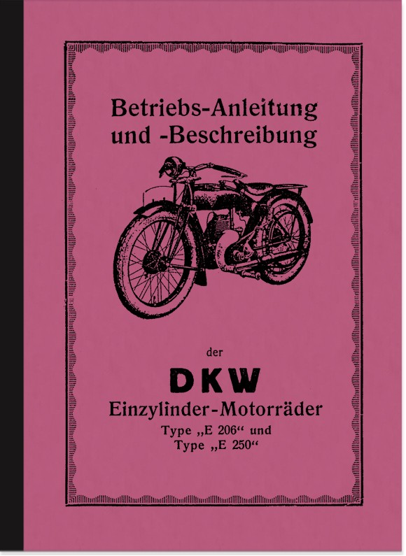 Bedienungsanleitung für DKW E 206 und E 250. Ausgabe etwa 1927. Passt auch weitgehend für die E 200.
