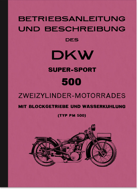 Bedienungsanleitung für DKW Super-Sport 500 Typ PM 500, wassergekühlt. Ausgabe in deutsch.