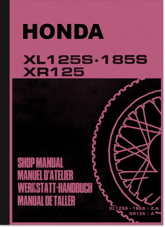 Werkstatthandbuch für Honda XL125S, XL185S und XR125. Ausgabe 1980, in deutsch, englisch, französisch und spanisch.
