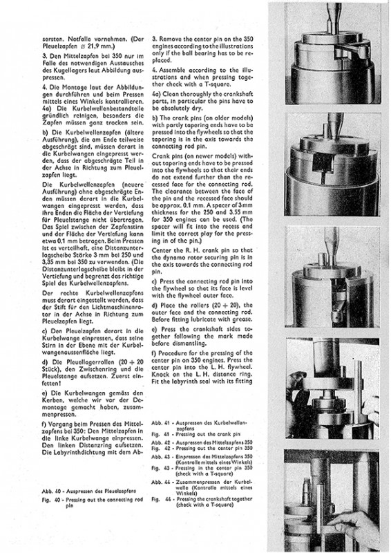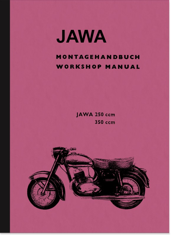Reparaturanleitung für Jawa 250 ccm 1-Zyl. und 350 ccm 2-Zyl., Typ 353-/03 -/04, Typ 354-/03 -/04, für die Modelle 1954 bis 1970, in deutsch und englisch.