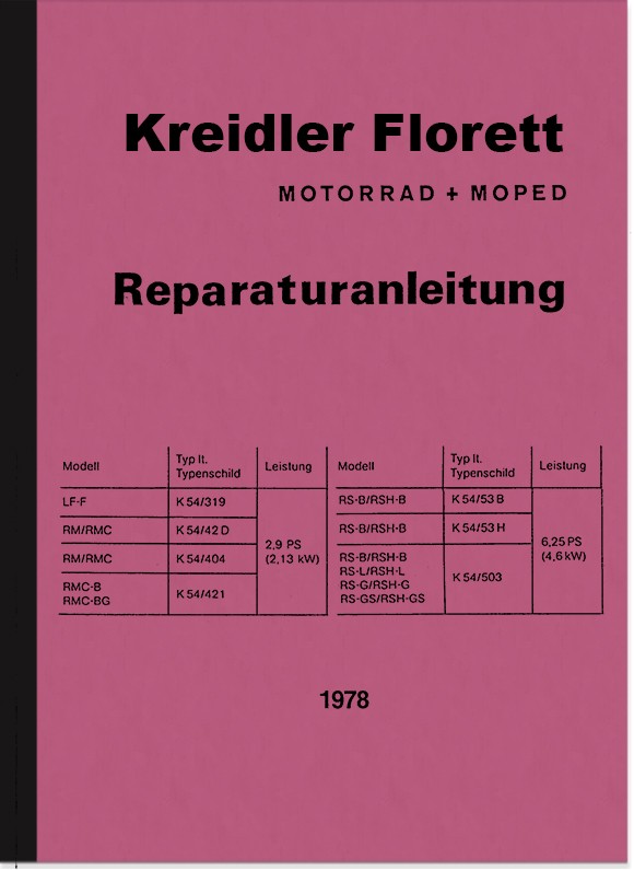 Kreidler Florett Motorrad Moped Reparaturanleitung Montageanleitung LF RM RMC GS K54 RS