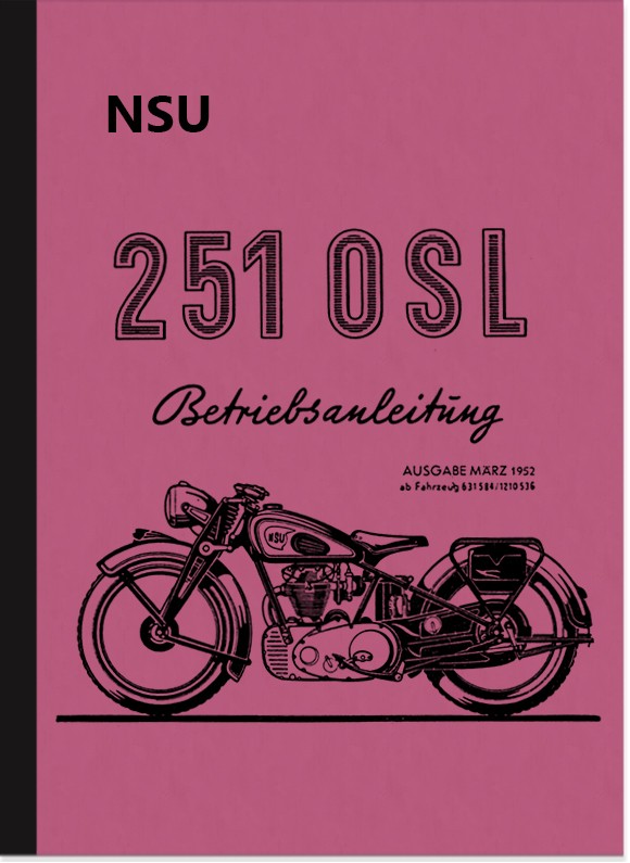 Bedienungsanleitung für NSU 251 OSL. Ausgabe März 1952.