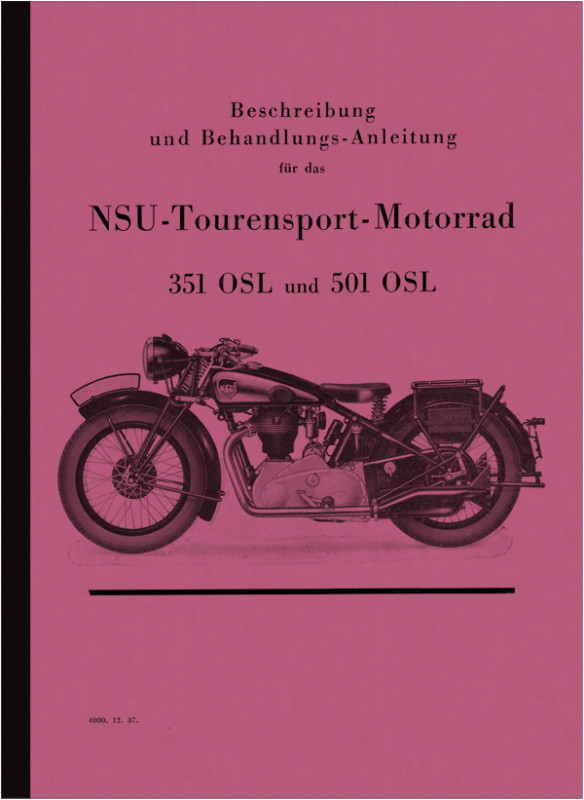 Bedienungsanleitung für NSU 351 OSL und 501 OSL mit gekapselten Ventilen. Ausgabe Dezember 1937, in deutsch.