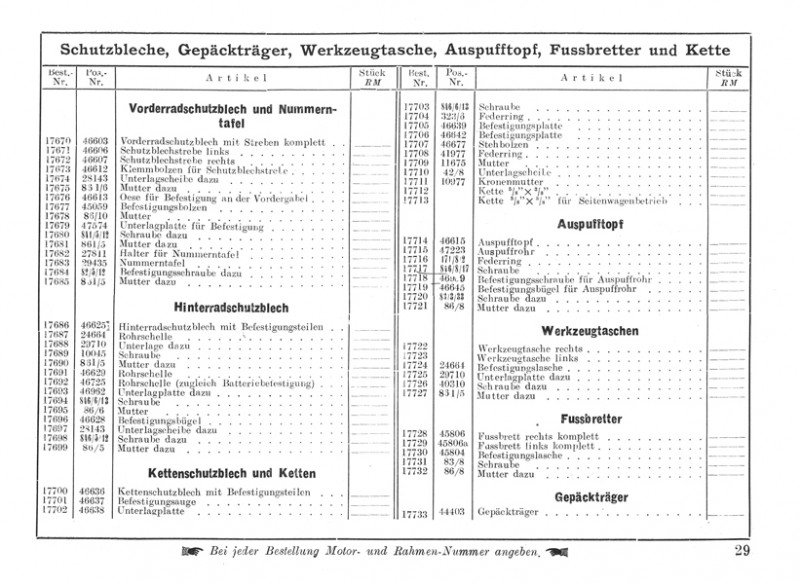 NSU 501 T und S Touren und Sport 1928 ErsatzteillisteNSU 501 T und S Touren und Sport 1928 Ersatzteilliste