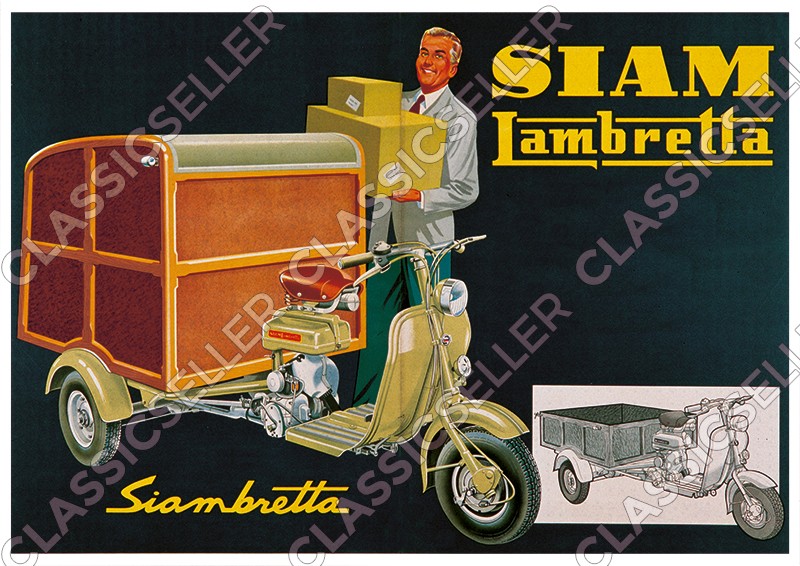 Siam Lambretta Siambretta Lastenroller Motorroller Kasten Koffer Poster Plakat Bild