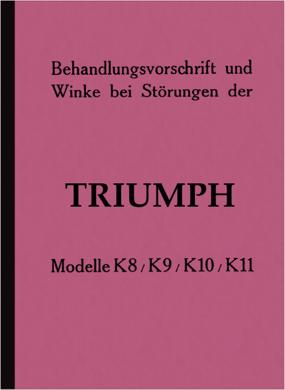 Bedienungsanleitung für die Triumph Motorräder K8, K9, K10 und K11. Ausgabe in deutsch.