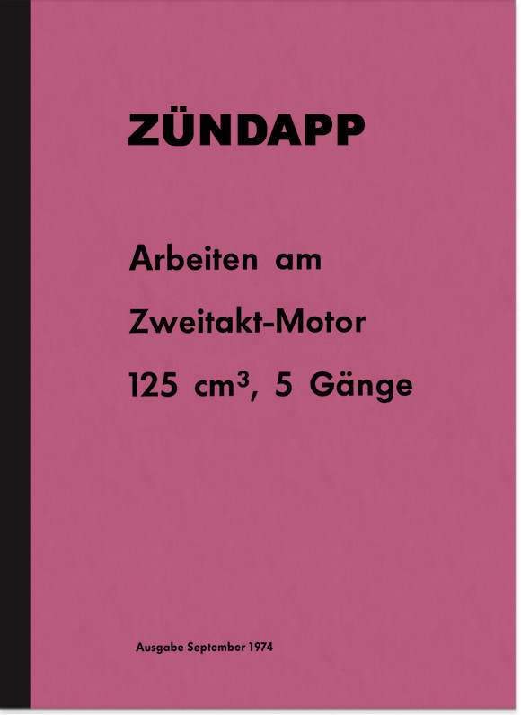 Reparaturanleitung (Arbeiten an 2-Takt-Motoren) für Zündapp 125 ccm 5-Gang Getriebe mit Fußschaltung und Kickstarter, für Motor Typ 285 mit 15 und 17 PS (11 und 12,5 kW) z.B. für KS 125 Sport /GS 125 /MC 125, u.a. Inklusive Schaltplan. Ausgabe 9/1974, in deutsch.