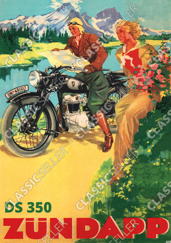 Zündapp DS 350 Motorrad am See/Fluss Vorkrieg Poster Plakat Bild
