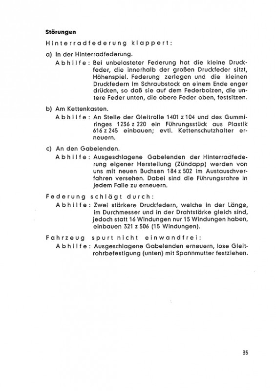 Zündapp Federungen Handbuch Reparaturanleitung Bella Norma Comfort Elastic DB 201 202 KS 601 175 200