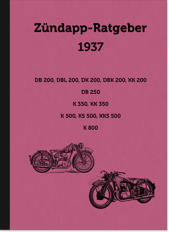 Zündapp Ratgeber 1937 Beschreibung Daten DB DBL DK DBK KK K KS KKS 200 250 350 500 800 Handbuch