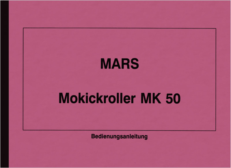 Bedienungsanleitung für Mars MK 50 Mokickroller mit 2,2 kW, 1-Zylinder, Gebläsegekühlt. Mit Elektostarter und Kickstarter. Inklusive Schaltplan. Ausgabe in deutsch.