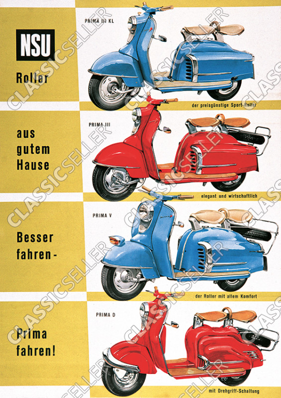 NSU Prima III KL V D Motorroller Modell-Übersicht Poster Plakat Bild