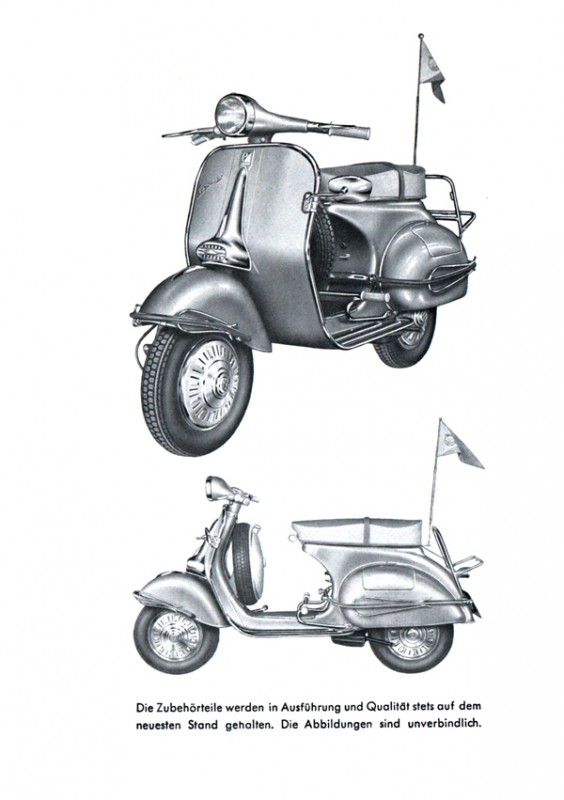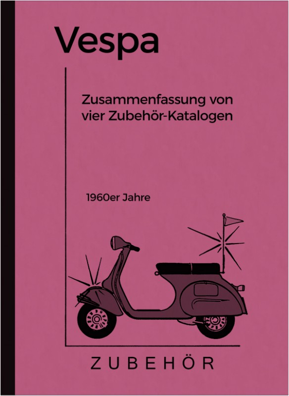 Zusammenfassung von vier Zubehör-Katalogen für die Vespa Motorroller der 60er Jahre.