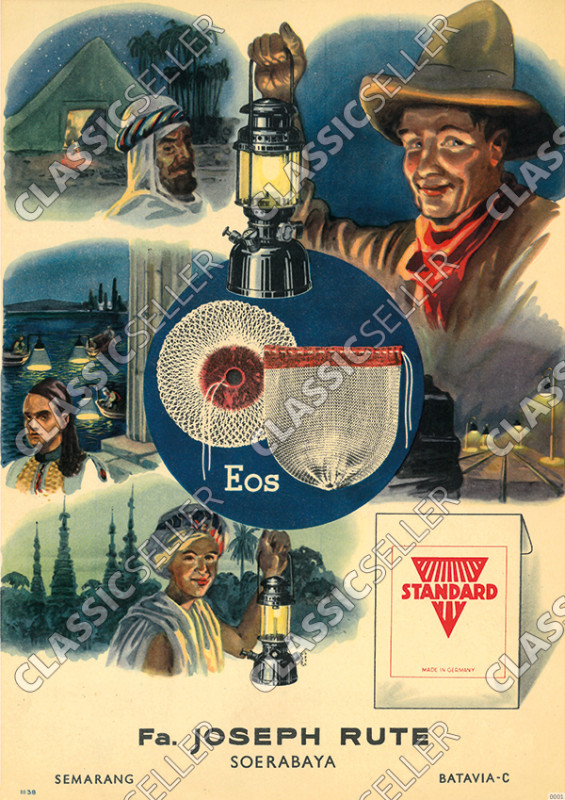 Joseph Rute Petroleum-Lampen (Summit, Jansen) Standard Eos 1938 Reklame Werbung Poster Plakat Bild
