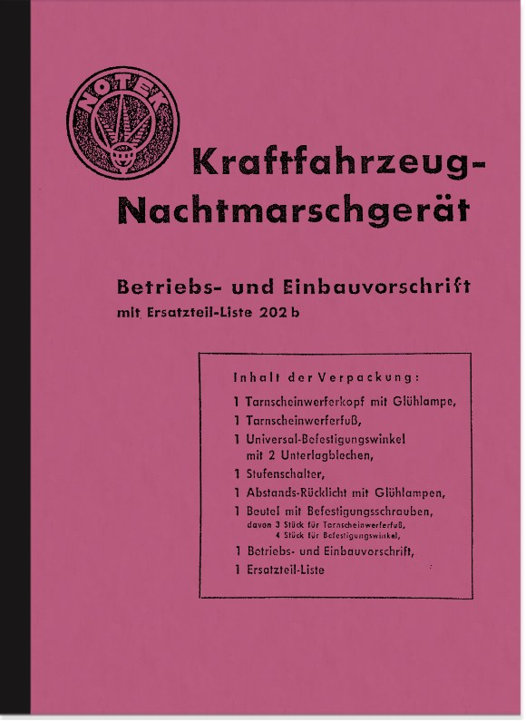 Einbauvorschrift und Ersatzteilliste Nr. 202 b für Notek KFZ-Nachtmarschgerät.