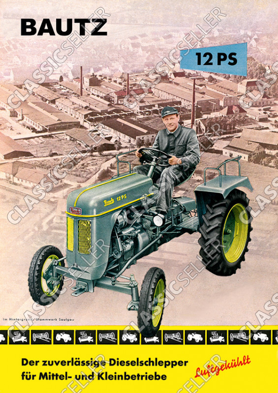Bautz 12 PS 12PS luftgekühlt Traktor Dieselschlepper Poster Plakat Bild