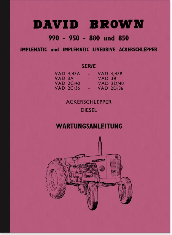 Anleitung für Wartung und kleinere Reparaturen, für folgende David Brown Typen: 990, 950, 880 und 850.