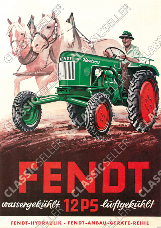Fendt 12 PS Dieselross Traktor Schlepper Reklame wassergekühlt luftgekühlt Poster Plakat Bild
