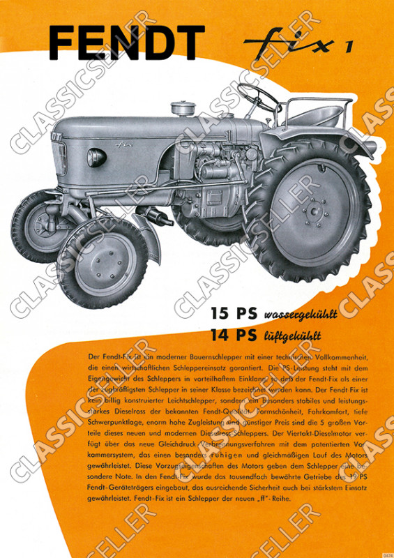 Fendt Fix 1 Dieselross Traktor Schlepper Reklame Poster Plakat Bild