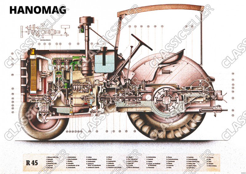 Hanomag R 45 Traktor Dieselschlepper Schnittzeichnung Motor R45 Poster Plakat Bild