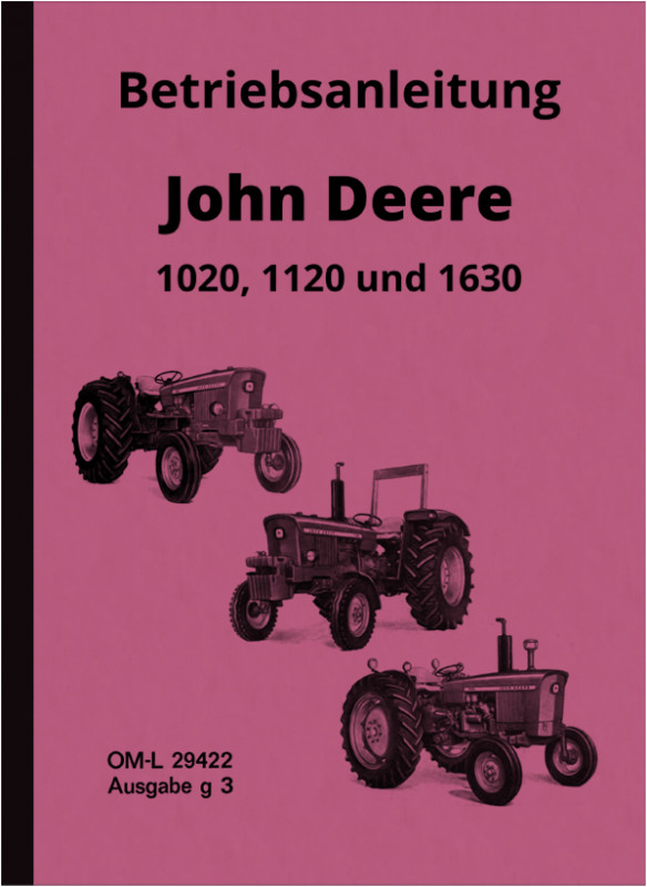 Bedienungsanleitung für John Deere Traktoren 1020, 1120 und 1630. Ausgabe in deutsch.