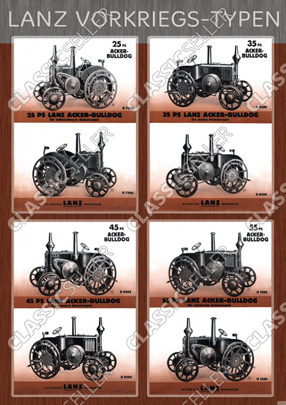 Lanz Eil-Bulldogs Modellübersicht Typentafel Poster Plakat Bild