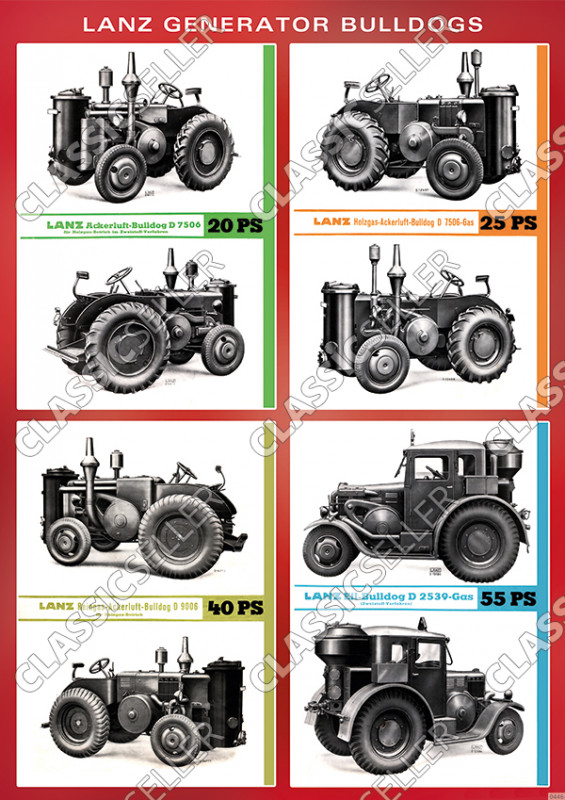 Lanz Generator-Bulldogs Modellübersicht Typentafel Poster Plakat Bild