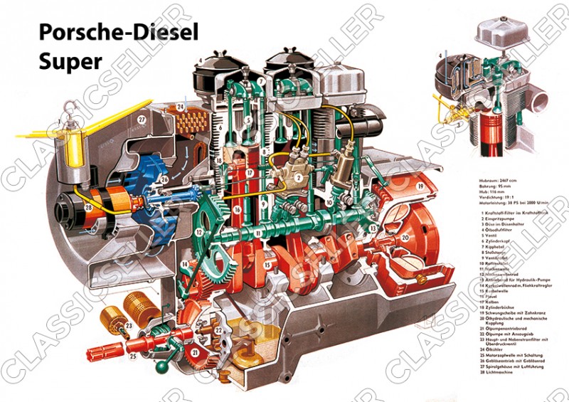 Porsche-Diesel Super Schlepper Traktor Poster Plakat Bild Motor Schnittzeichnung