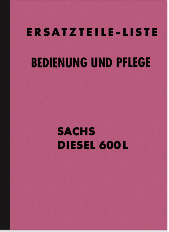 Bedienungsanleitung und Ersatzteilliste für Sachs 600 L (600 ccm Dieselmotor, luftgekühlt). Beispielsweise eingebaut in Holder A 12, B 12, E 12 usw. Ausgabe in deutsch.